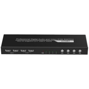 4K60Hz 4-port HDMI USB2.0 KVM Switch, Switch by: Buttons, Hotkey, Mouse, RS232, HDR10, Dolby Vision.